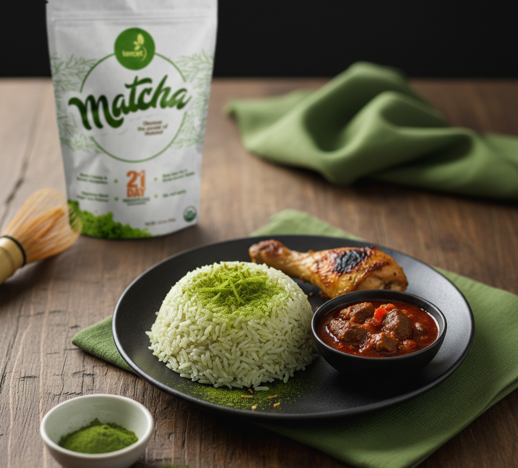This recipe offers a simple, colorful, and unique twist on classic Nigerian rice dishes, incorporating the subtle earthiness of matcha into the beloved coconut rice.
