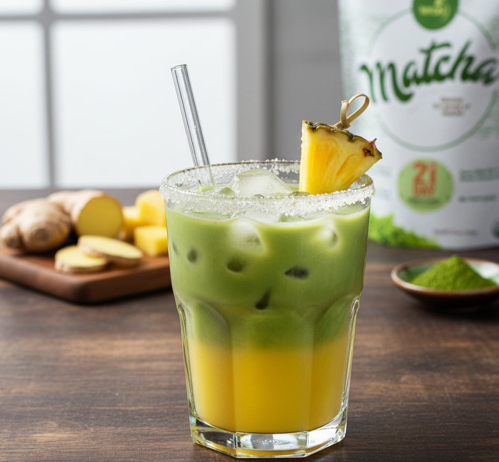 This recipe takes the energising power of matcha and blends it with the refreshing, zesty taste of pineapple and a kick of ginger, creating a vibrant and cooling drink perfect for a Nigerian climate.